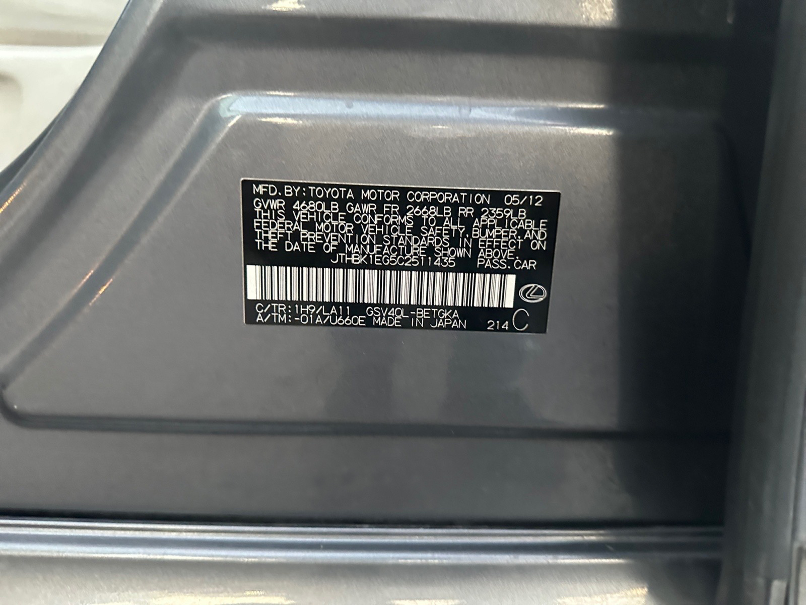 - JTHBK1EG5C2511435