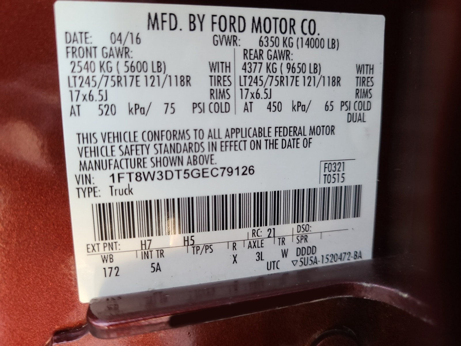 - 1FT8W3DT5GEC79126